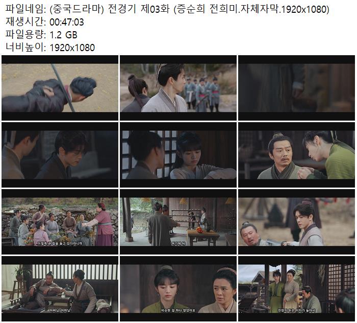 | (중국드라마) 전경기 제03화 (증순희 전희미.자체자막.1920x1080).mp4 | 1.2 G | 00:47:03 | 1920x1080 |