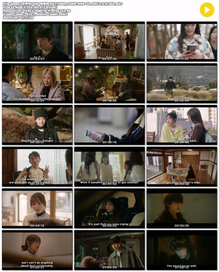 | 찬란한 너의 계절에.E07.1080p.DSNP.WEB-DL.AAC2.0.H.264.mkv | 2.6 G | 01:11:00 | 1920x1080 |
