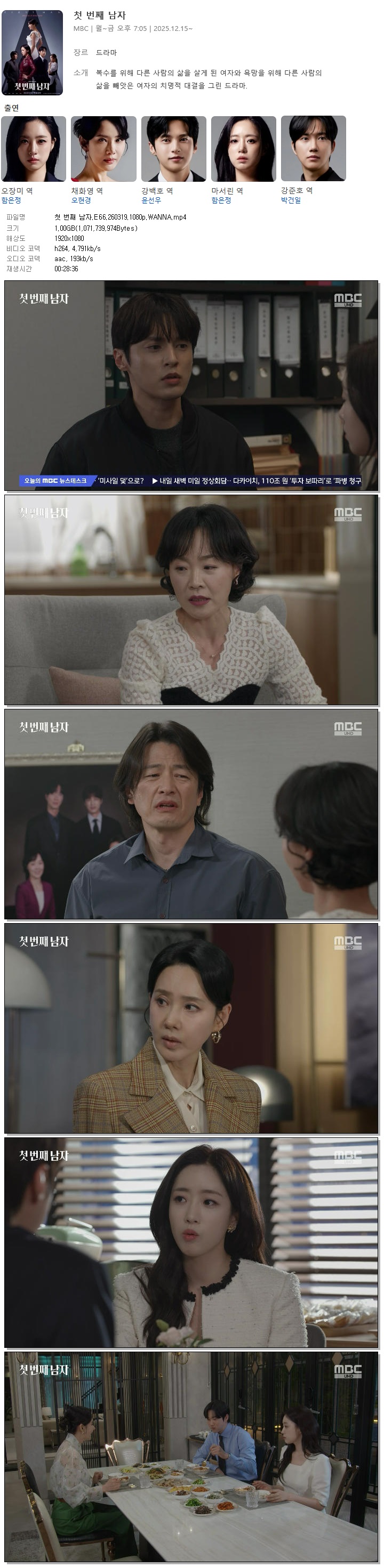 | [MBC] 첫 번째 남자.E66.260319.1080p.WANNA[함은정, 오현경].mp4 | 1022.1 M | 00:28:36 | 1920x1080 |