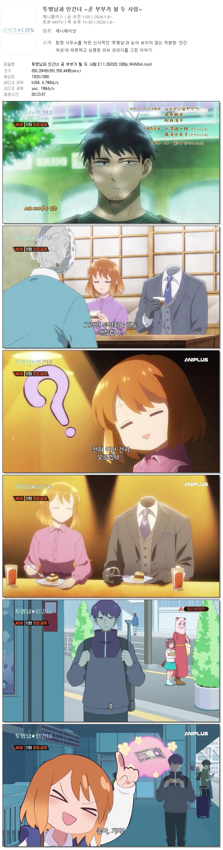| 투명남과 인간녀 곧 부부가 될 두 사람.E11.260320.1080p.WANNA.mp4 | 850.3 M | 00:23:47 | 1920x1080 |