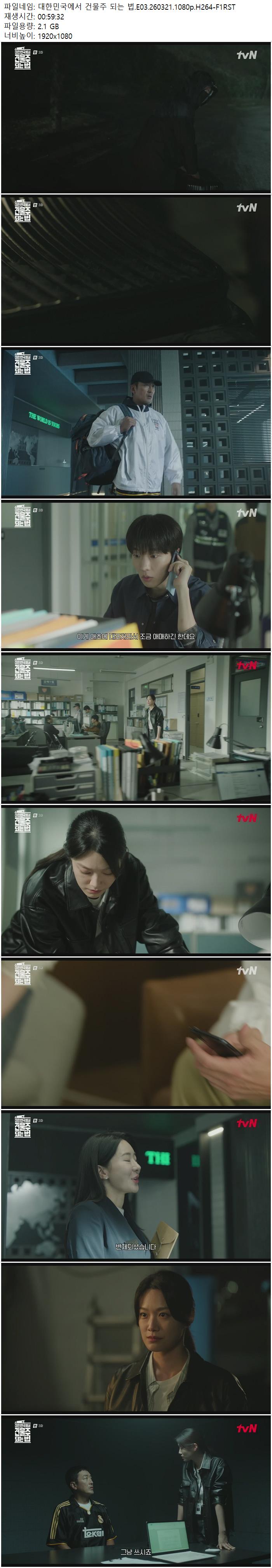 | 대한민국에서 건물주 되는 법.E03.260321.1080p.H264-F1RST.mp4 | 2.1 G | 00:59:32 | 1920x1080 |
