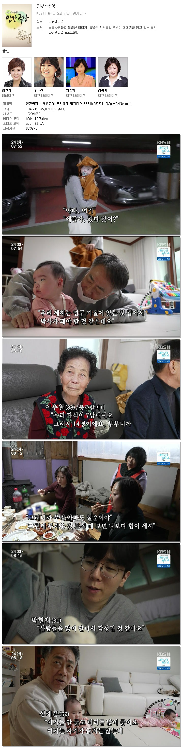 [KBS1] 인간극장.E6340.260324.1080p.WANNA.mp4 1.1 G 00:32:45 1920x1080
