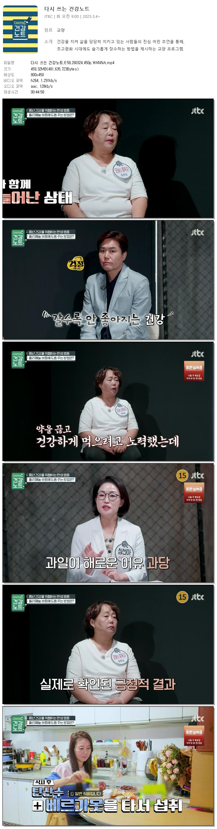 | [JTBC] 다시 쓰는 건강노트.E58.260324.450p.WANNA.mp4 | 459.3 M | 00:44:58 | 800x450 |