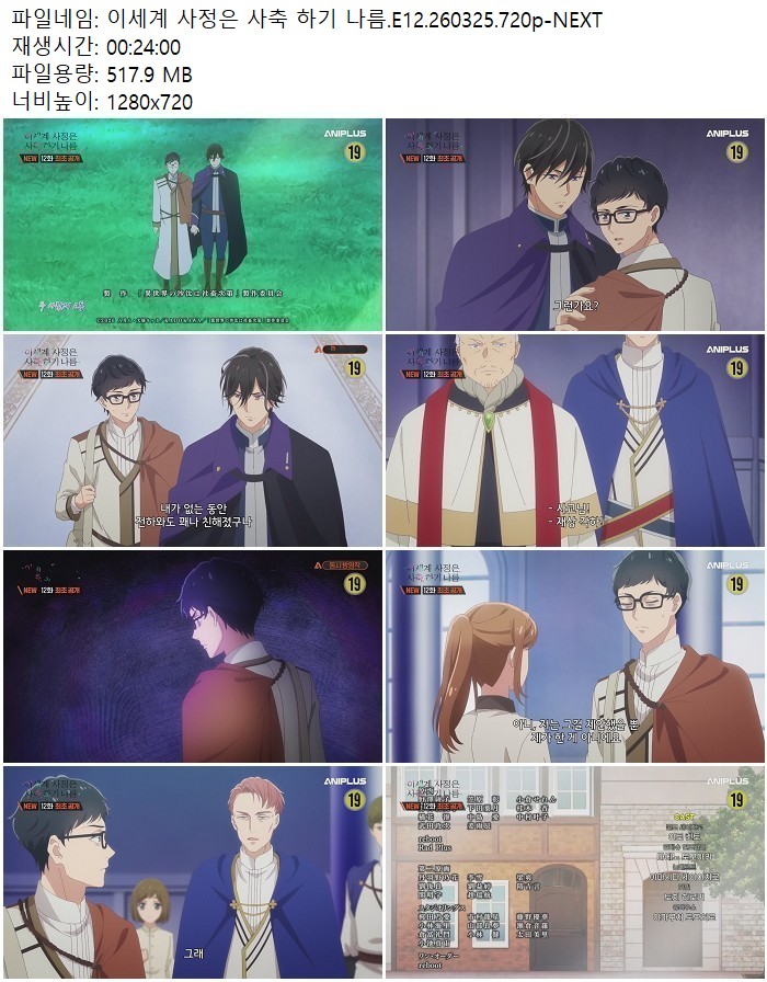 | 이세계 사정은 사축 하기 나름.E12.260325.720p-NEXT.mp4 | 517.9 M | 00:24:00 | 1280x720 |