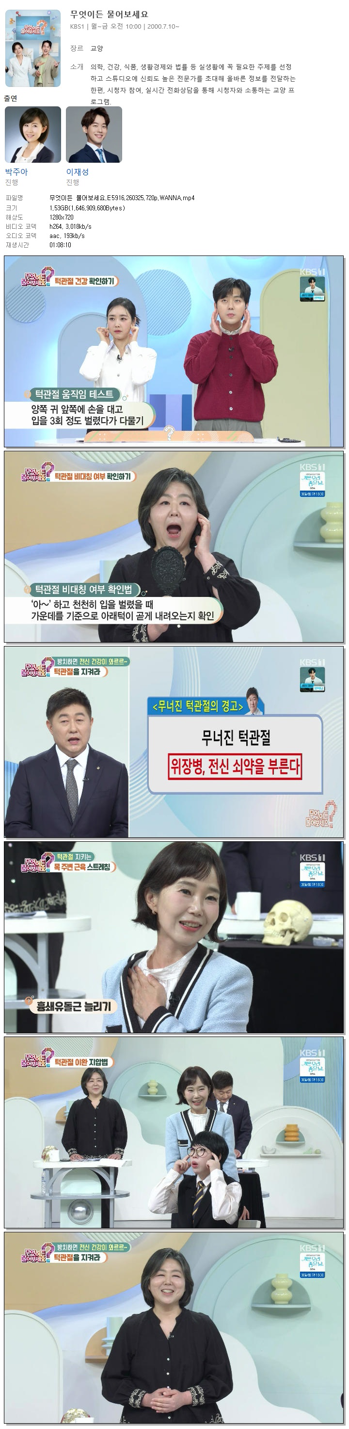 | [KBS1] 무엇이든 물어보세요.E5916.260325.720p.WANNA[박주아, 이재성].mp4 | 1.5 G | 01:08:10 | 1280x720 |