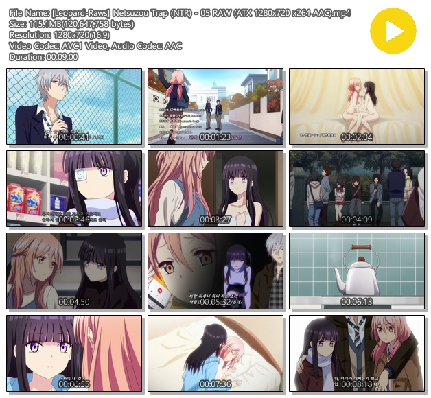 | [Leopard-Raws] Netsuzou Trap (NTR) - 05 RAW (ATX 1280x720 x264 AAC).mp4 | 115.1 M | 00:09:00 | 1280x720 |