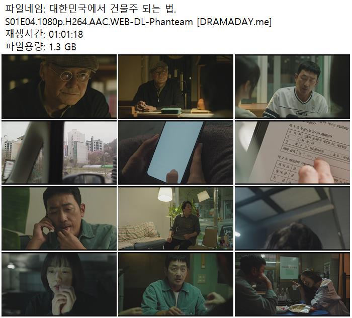대한민국에서 건물주 되는 법.S01E04.1080p.H264.AAC.WEB-DL-Phanteam [DRAMADAY.me].mkv 1.3 G 01:01:00 1920x1080