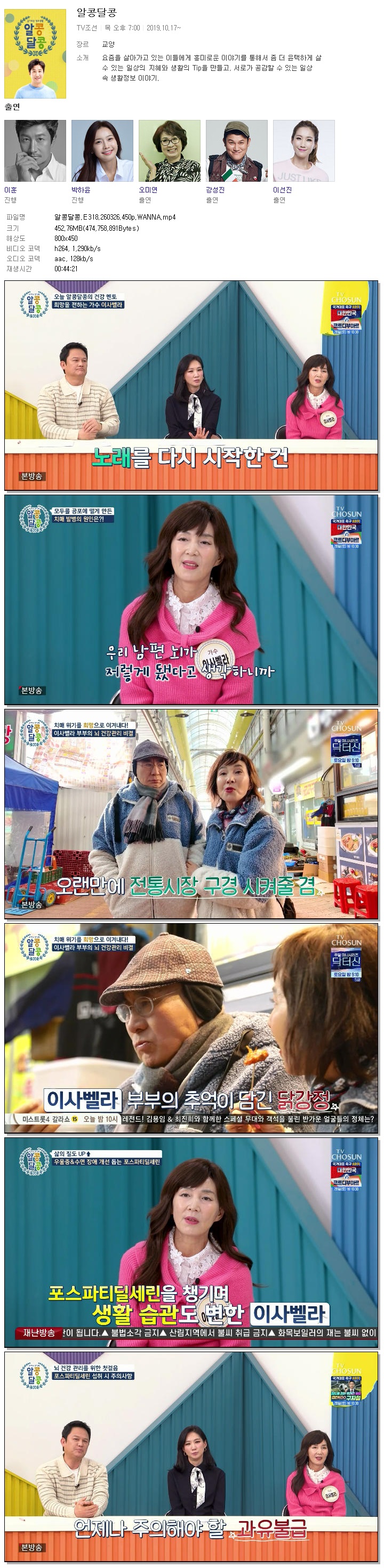 | [TV조선] 알콩달콩.E318.260326.450p.WANNA[이훈, 지원이].mp4 | 452.8 M | 00:44:21 | 800x450 |