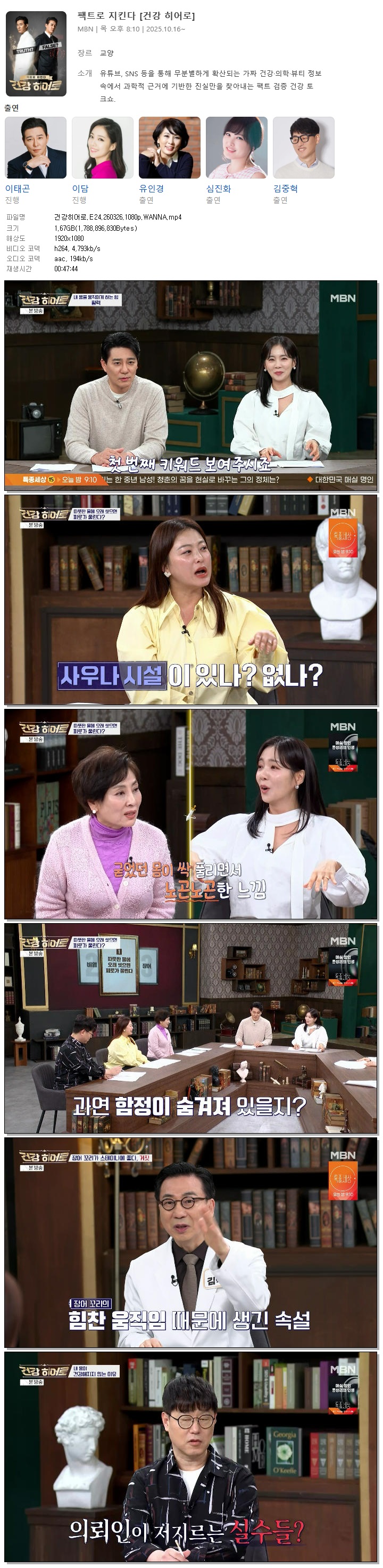 | [MBN] 건강히어로.E24.260326.1080p.WANNA[이태곤, 이담].mp4 | 1.7 G | 00:47:44 | 1920x1080 |
