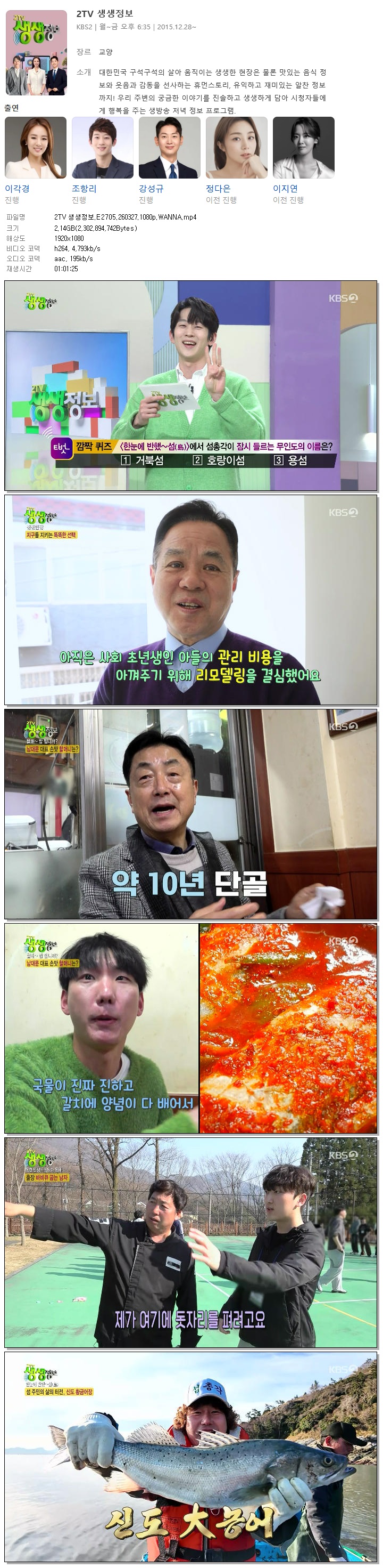 | [KBS2] 2TV 생생정보.E2705.260327.1080p.WANNA[이각경, 조항리].mp4 | 2.1 G | 01:01:25 | 1920x1080 |