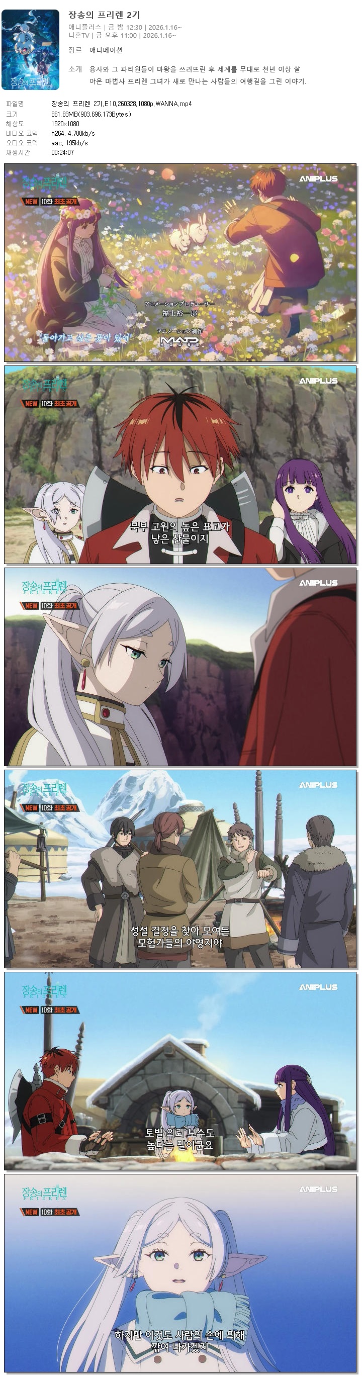 | 장송의 프리렌 2기.E10.260328.1080p.WANNA.mp4 | 861.8 M | 00:24:07 | 1920x1080 |
