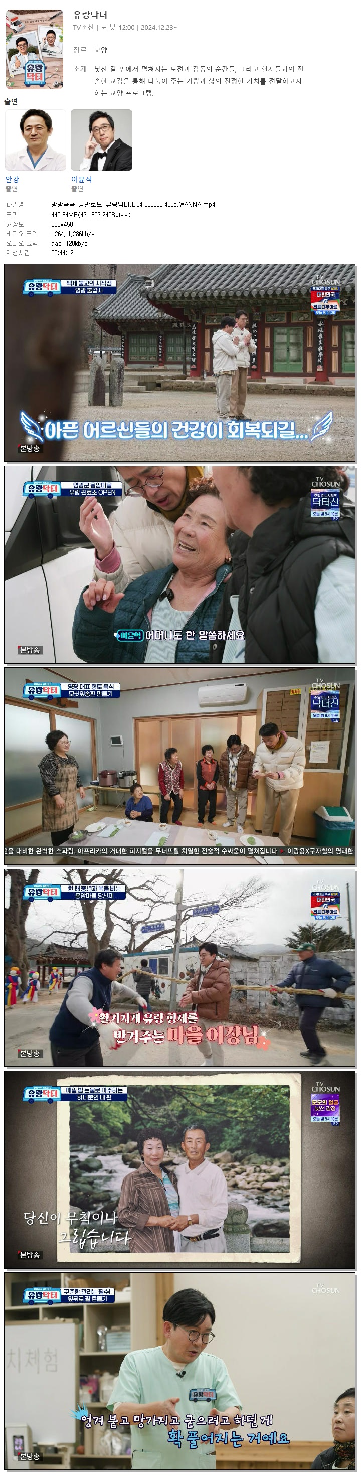 | [TV조선] 방방곡곡 낭만로드 유랑닥터.E54.260328.450p.WANNA[안강, 이윤석].mp4 | 449.8 M | 00:44:12 | 800x450 |