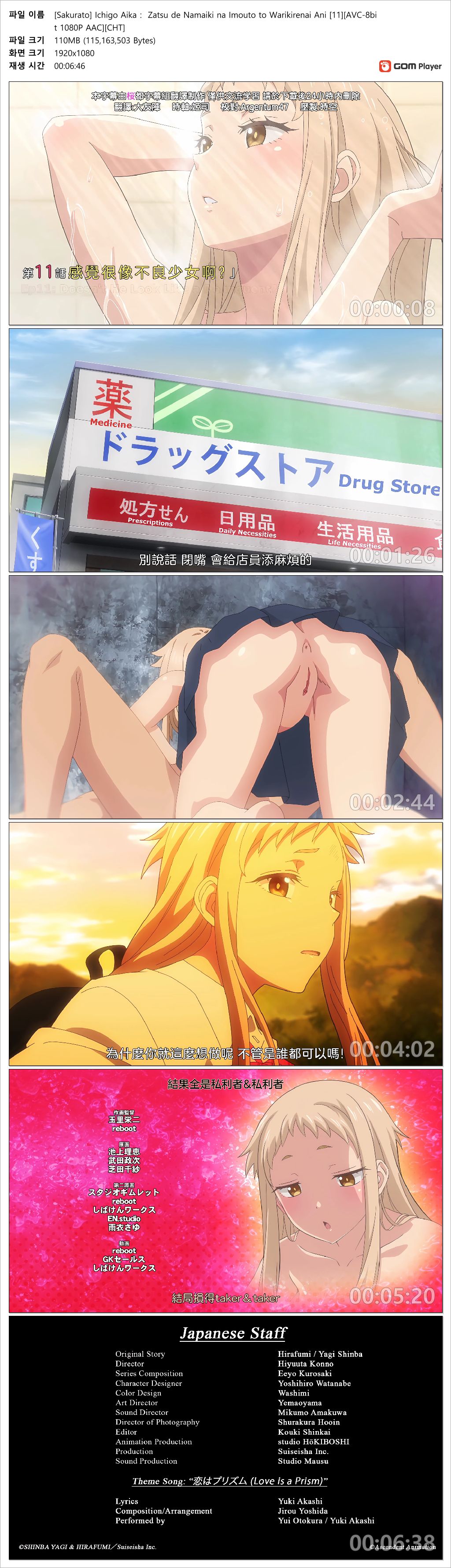 | [Sakurato] Ichigo Aika: Zatsu de Namaiki na Imouto to Warikirenai Ani [11][AVC-8bit 1080P AAC][CHT].mp4 | 109.8 M | 00:06:46 | 1920x1080 |