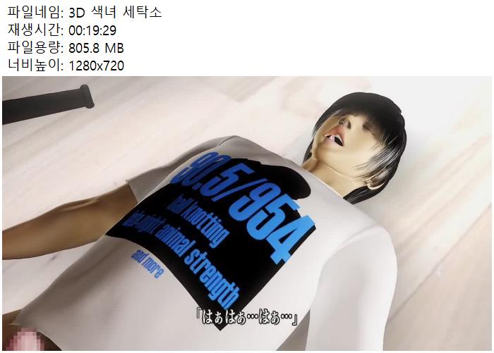 3D 색녀 세탁소.mp4 805.8 M 00:19:29 1280x720
