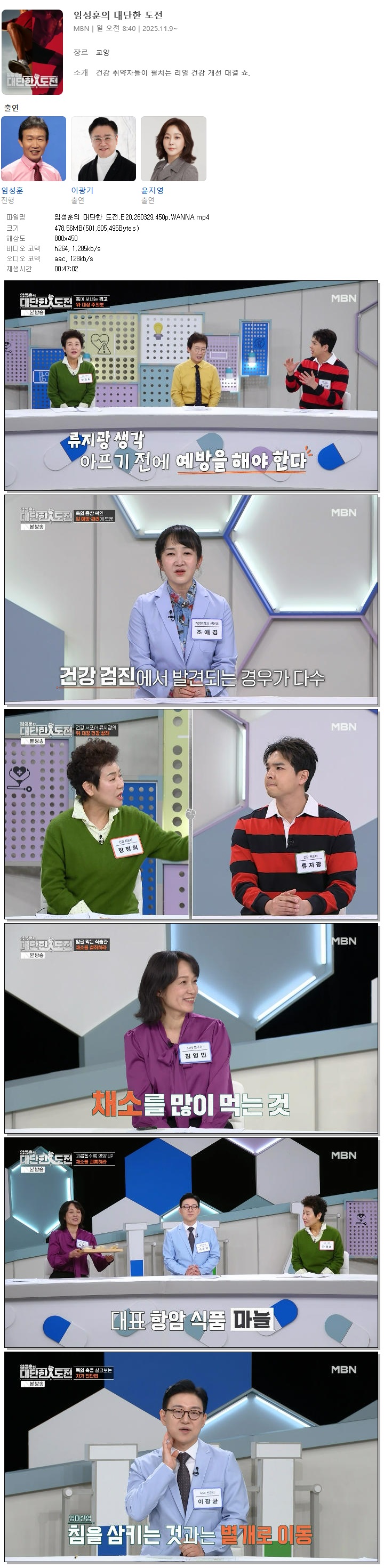 | [MBN] 임성훈의 대단한 도전.E20.260329.450p.WANNA[임성훈, 이광기].mp4 | 478.6 M | 00:47:02 | 800x450 |