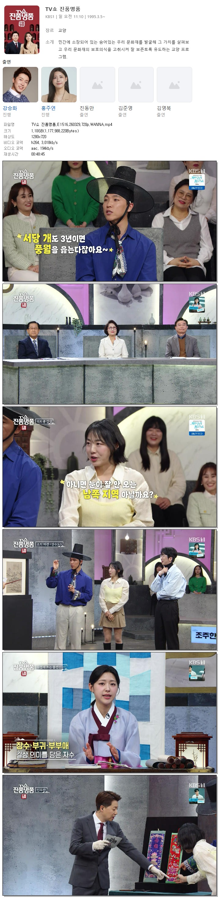 [KBS1] TV쇼 진품명품.E1516.260329.720p.WANNA[강승화, 진동만].mp4 1.1 G 00:48:45 1280x720
