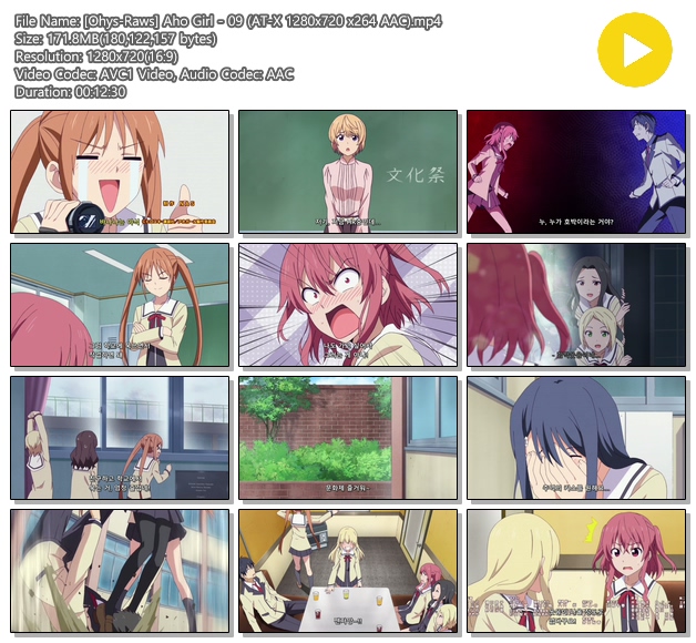 | [Ohys-Raws] Aho Girl - 09 (AT-X 1280x720 x264 AAC).mp4 | 171.8 M | 00:12:30 | 1280x720 |