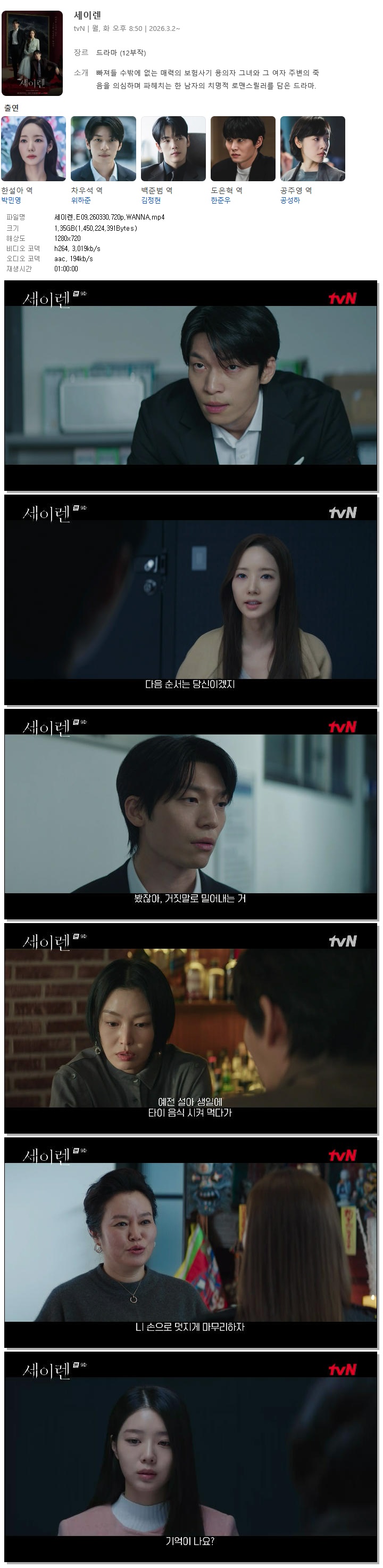 [TVN] 세이렌.E09.260330.720p.WANNA[박민영, 위하준].mp4 1.4 G 01:00:00 1280x720