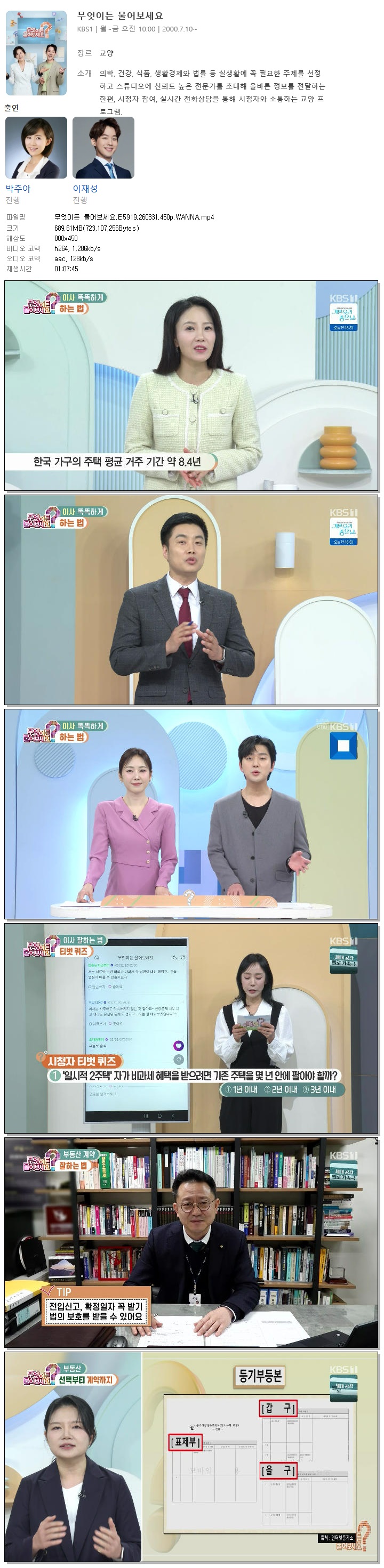 [KBS1] 무엇이든 물어보세요.E5919.260331.450p.WANNA[박주아, 이재성].mp4 689.6 M 01:07:45 800x450