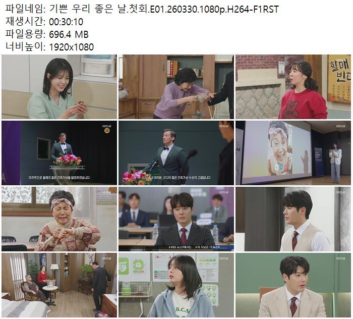 | 기쁜 우리 좋은 날.첫회.E01.260330.1080p.H264-F1RST.mp4 | 696.4 M | 00:30:10 | 1920x1080 |
