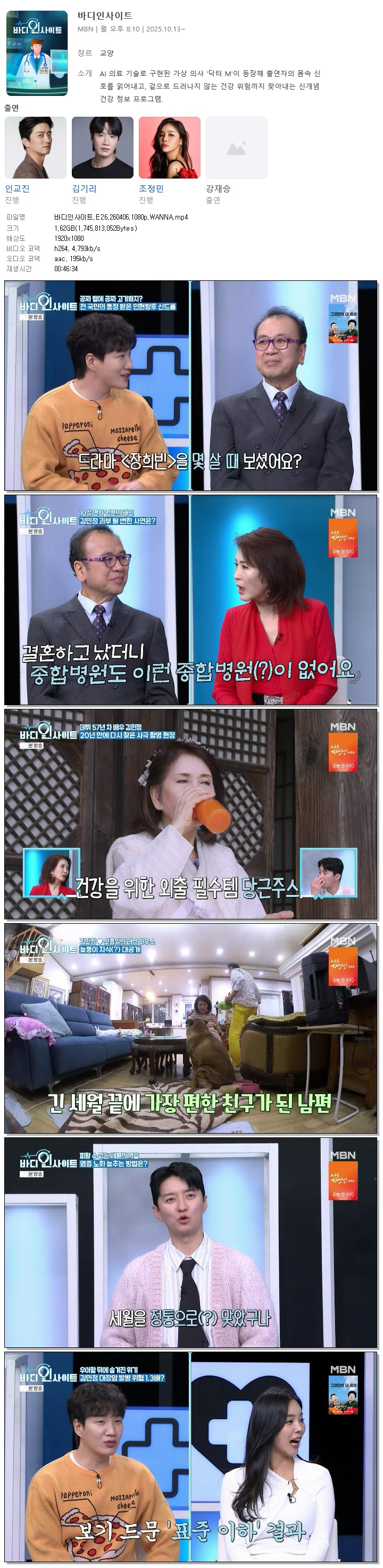 | [MBN] 바디인사이트.E26.260406.1080p.WANNA[인교진, 김기리].mp4 | 1.6 G | 00:46:34 | 1920x1080 |