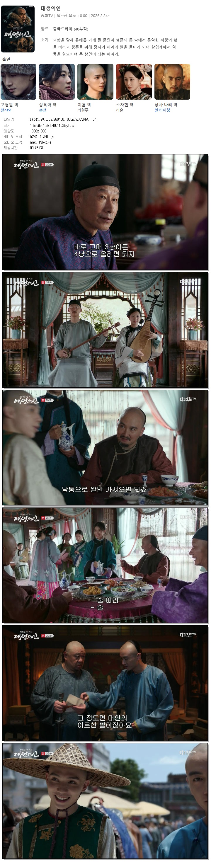 | [중화TV] 대생의인.E32.260408.1080p.WANNA[천샤오, 손천].mp4 | 1.6 G | 00:45:08 | 1920x1080 |
