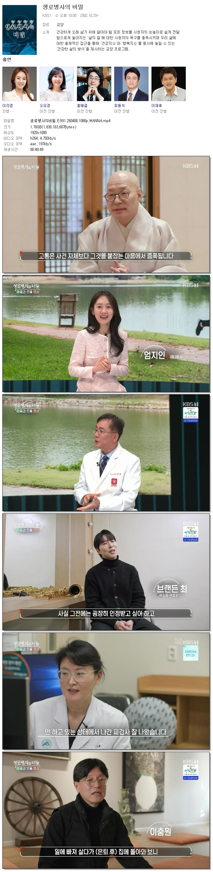 | [KBS1] 생로병사의비밀.E991.260408.1080p.WANNA.mp4 | 1.7 G | 00:48:49 | 1920x1080 |