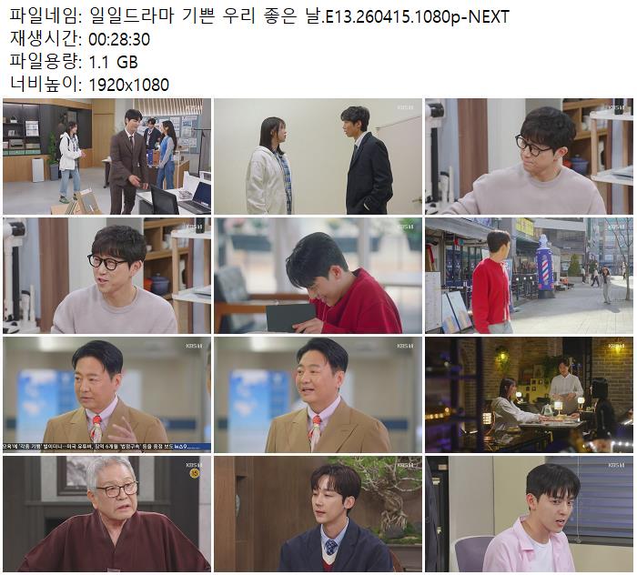 | 일일드라마 기쁜 우리 좋은 날.E13.260415.1080p-NEXT.mp4 | 1.1 G | 00:28:30 | 1920x1080 |