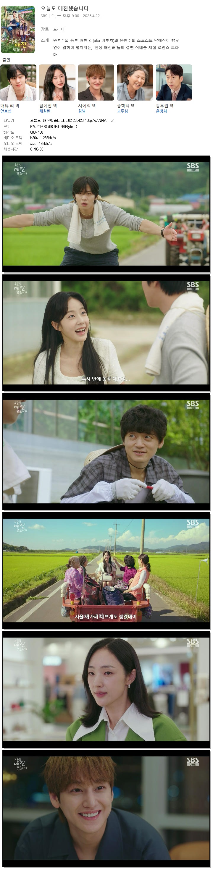[SBS] 오늘도 매진했습니다.E02.260423.450p.WANNA[안효섭, 채원빈].mp4 674.2 M 01:06:09 800x450