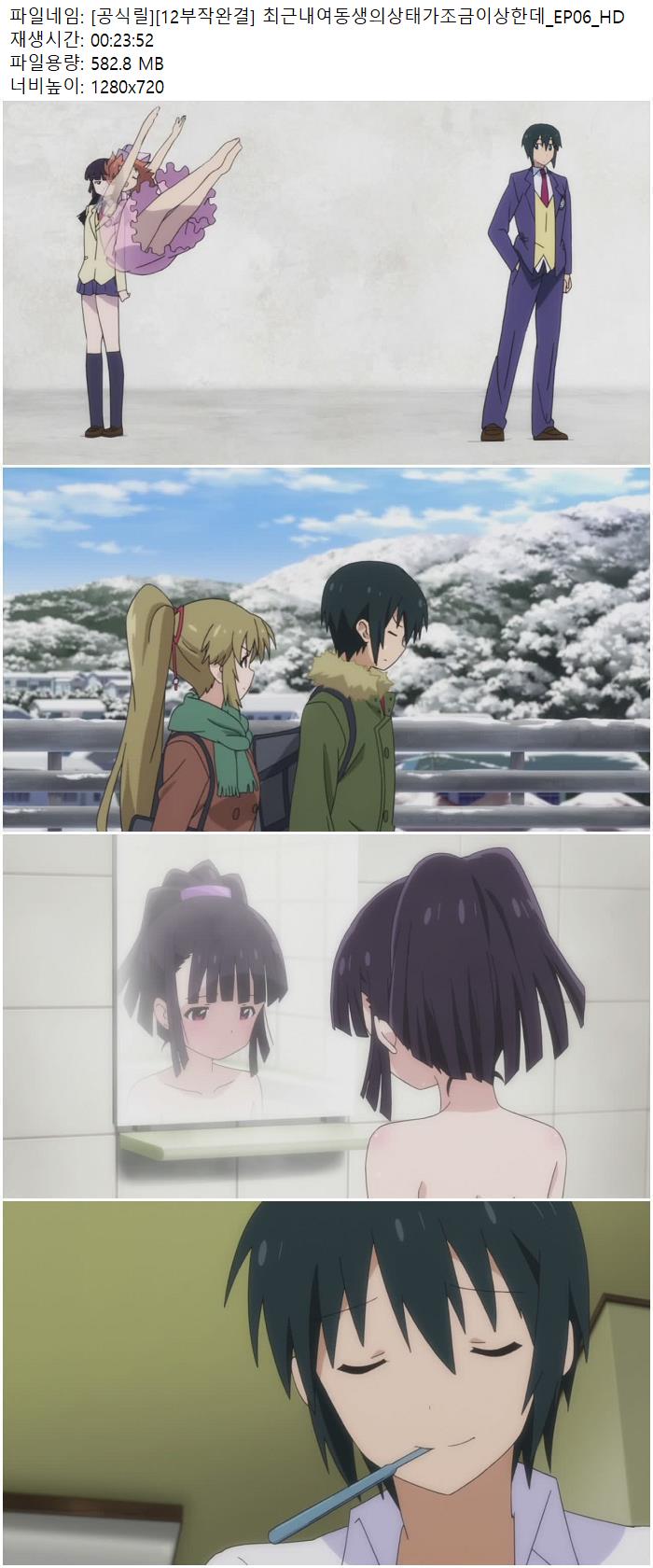 | [공식릴][12부작완결] 최근내여동생의상태가조금이상한데_EP06_HD.mp4 | 582.8 M | 00:23:52 | 1280x720 |