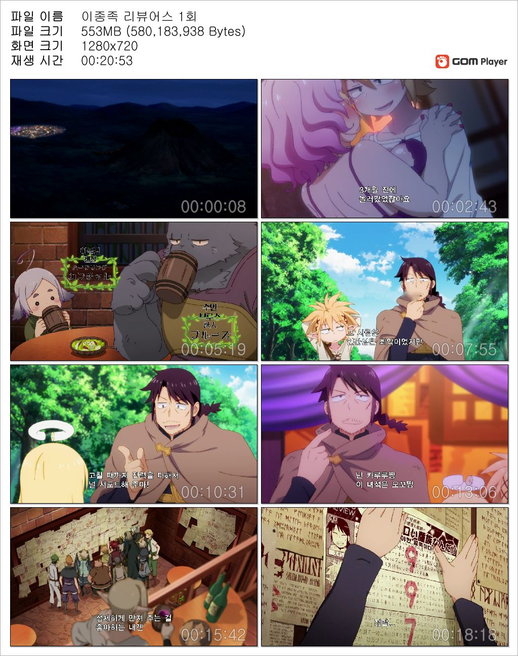 | 이종족 리뷰어스 1회.mp4 | 553.3 M | 00:20:53 | 1280x720 |