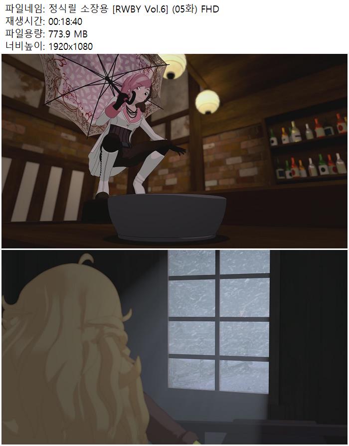 | 정식릴 소장용 [RWBY Vol.6] (05화) FHD.mp4 | 773.9 M | 00:18:40 | 1920x1080 |