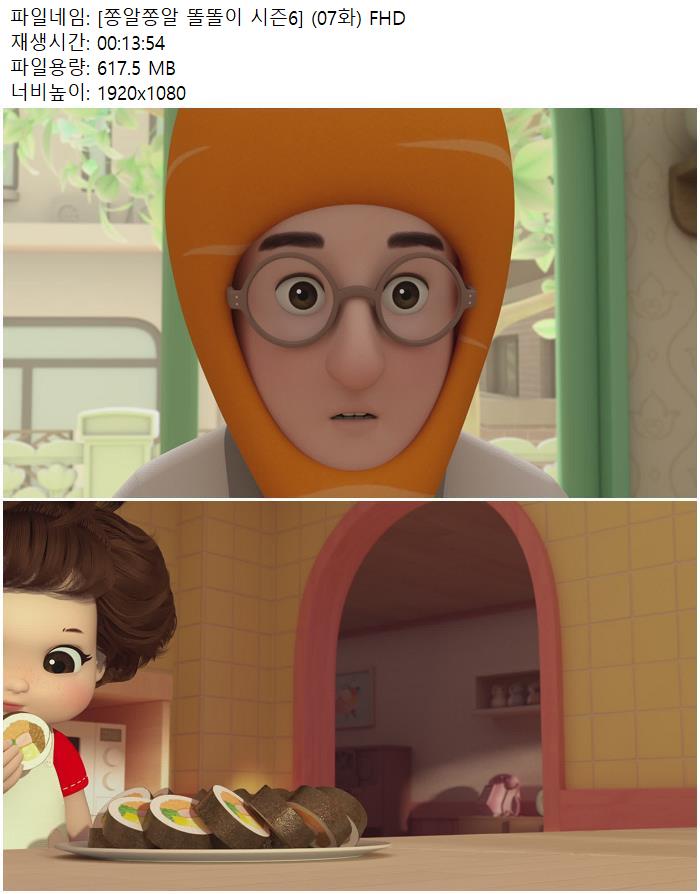 | [쫑알쫑알 똘똘이 시즌6] (07화) FHD.mp4 | 617.5 M | 00:13:54 | 1920x1080 |