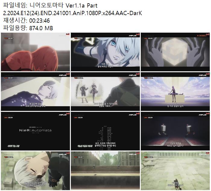| 니어오토마타 Ver1.1a Part 2.2024.E12(24).END.241001.AniP.1080P.x264.AAC-DarK.mp4 | 874 M | - | 1920x1080 |