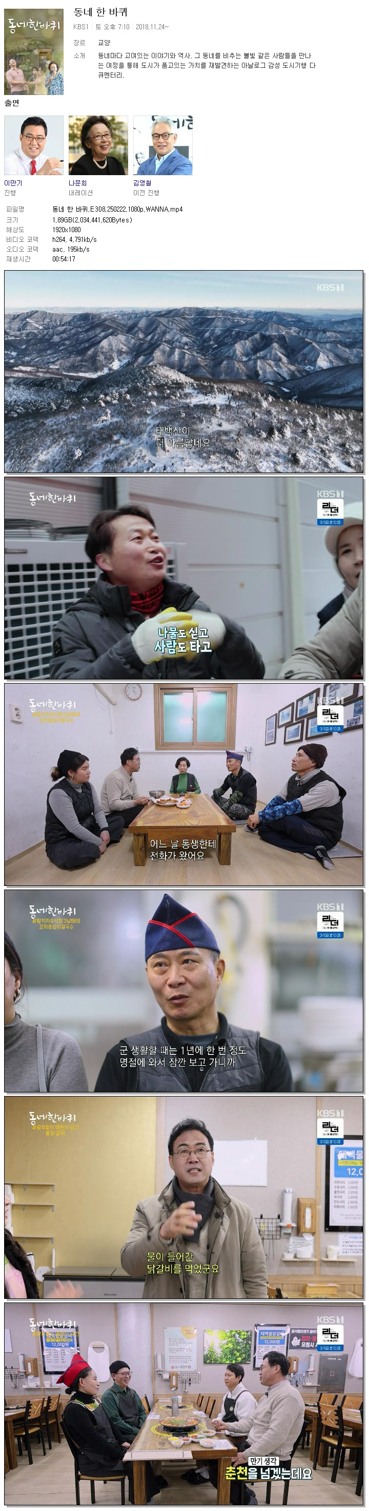 [KBS1] 동네 한 바퀴.E308.250222.1080p.WANNA[이만기].mp4 1.9 G 00:54:17 1920x1080