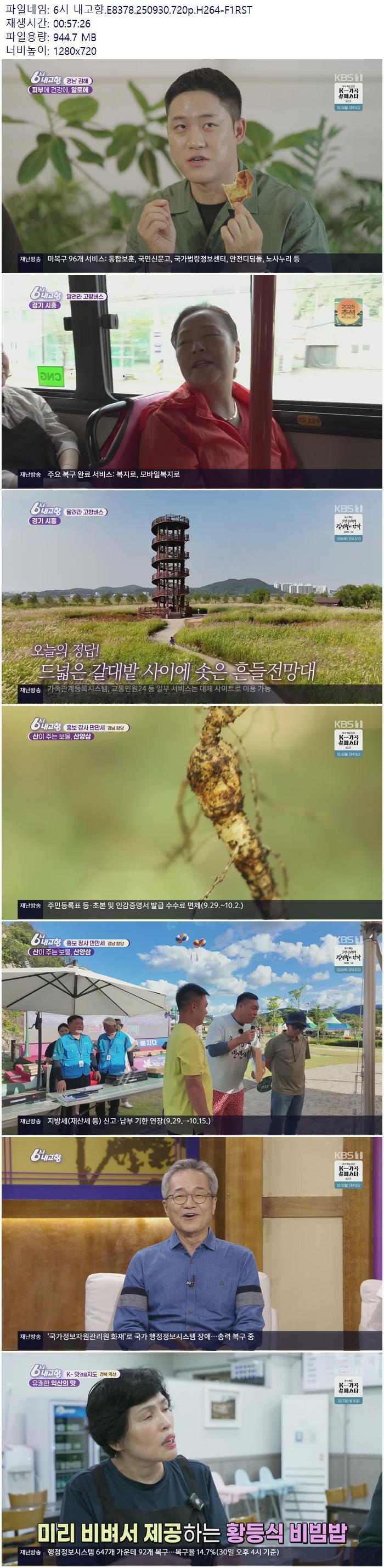 6시 내고향.E8378.250930.720p.H264-F1RST.mp4 | 944.7 M | - | 1280x720 |