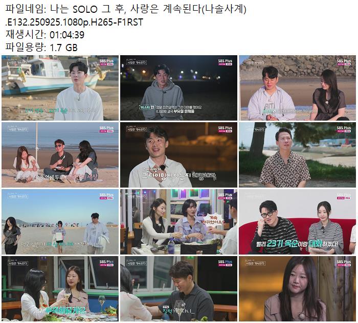 나는 SOLO 그 후, 사랑은 계속된다(나솔사계).E132.250925.1080p.H265-F1RST.mp4 | 1.7 G | - | 1920x1080 |