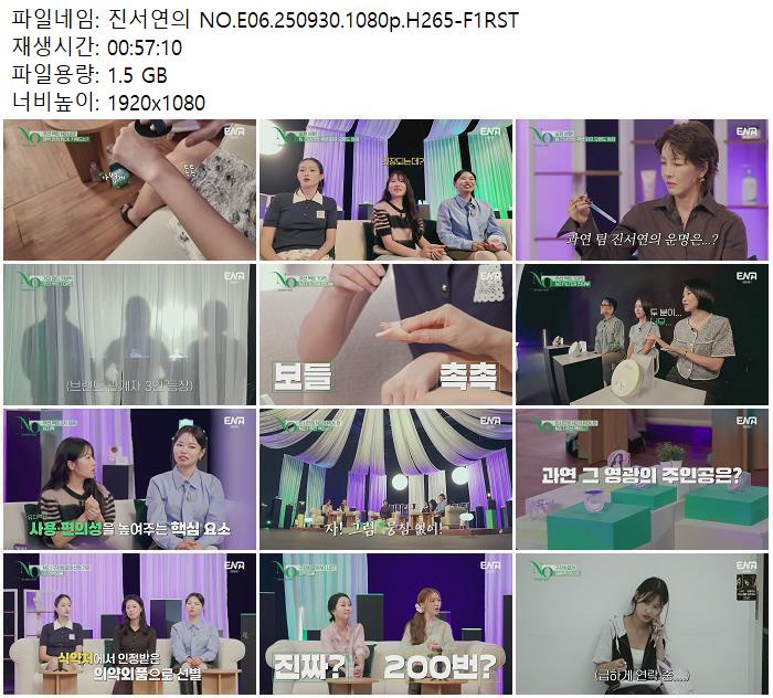 진서연의 NO.E06.250930.1080p.H265-F1RST.mp4 | 1.5 G | - | 1920x1080 |