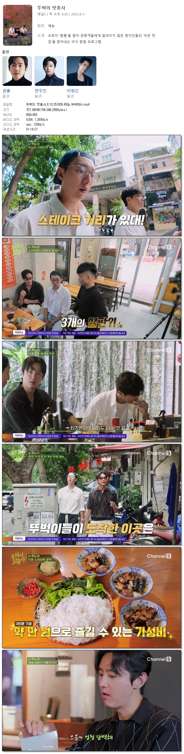 [채널S] 뚜벅이 맛총사.E10.251009.450p.WANNA[권율, 연우진].mp4 | 757.3 M | 01:14:27 | 800x450 |