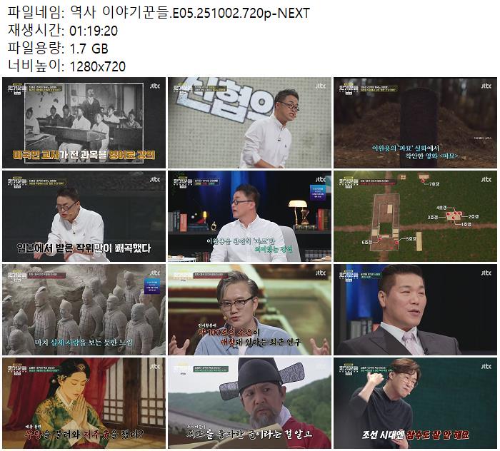 역사 이야기꾼들.E05.251002.720p-NEXT.mp4 | 1.7 G | - | 1280x720 |
