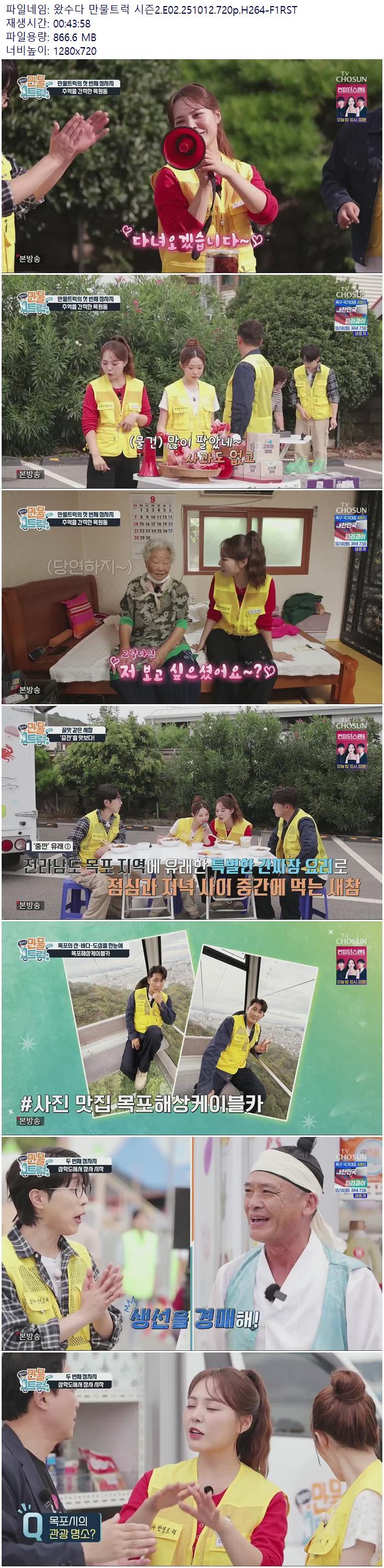 왔수다 만물트럭 시즌2.E02.251012.720p.H264-F1RST.mp4 | 866.6 M | - | 1280x720 |