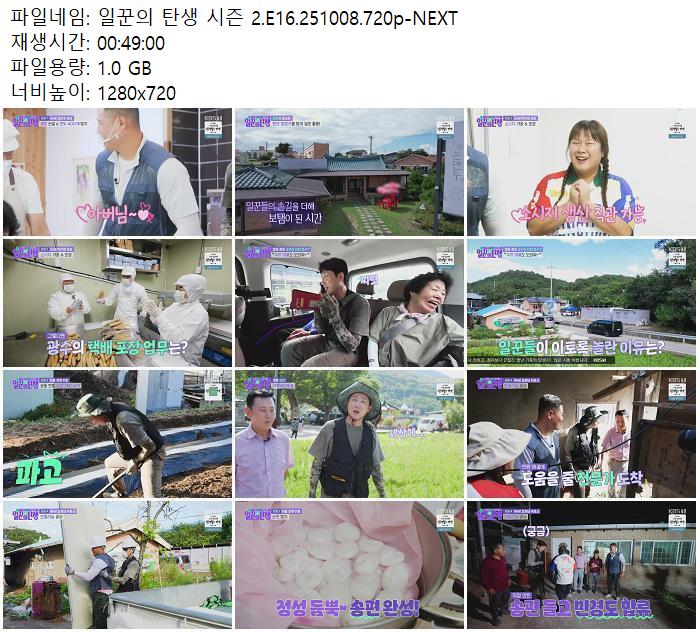 일꾼의 탄생 시즌 2.E16.251008.720p-NEXT.mp4 | 1 G | - | 1280x720 |