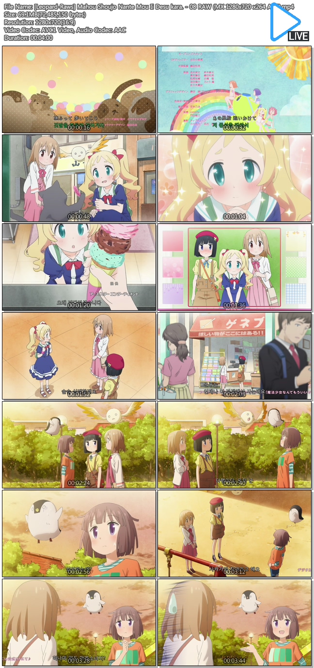| [Leopard-Raws] Mahou Shoujo Nante Mou Ii Desu kara. - 08 RAW (MX 1280x720 x264 AAC).mp4 | 69.1 M | 00:04:00 | 1280x720 |