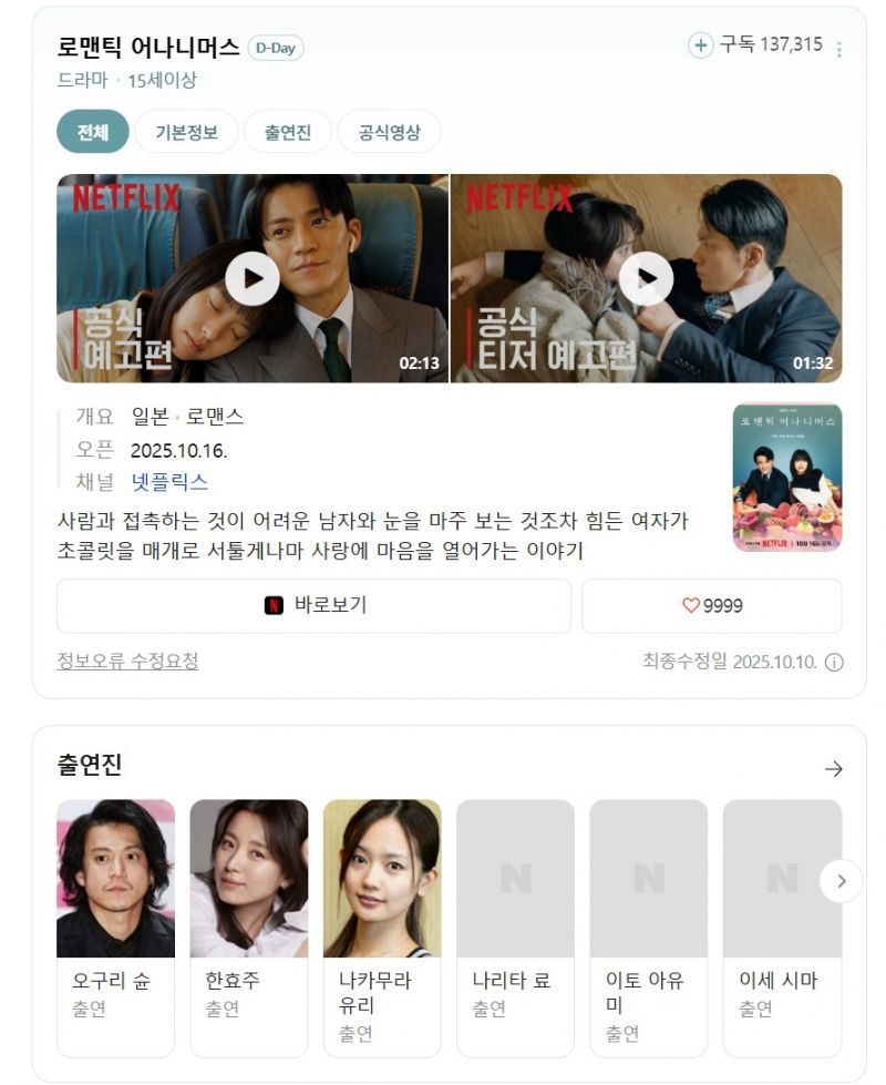 10월최신 한효주 [ 로맨틱 어나니머스 ] 완결 1080p 5.1 공식자막 다시보기 토렌트