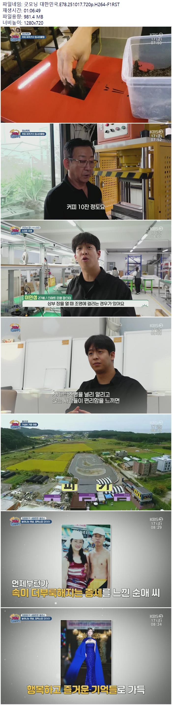 | 굿모닝 대한민국.E78.251017.720p.H264-F1RST.mp4 | 981.4 M | - | 1280x720 |