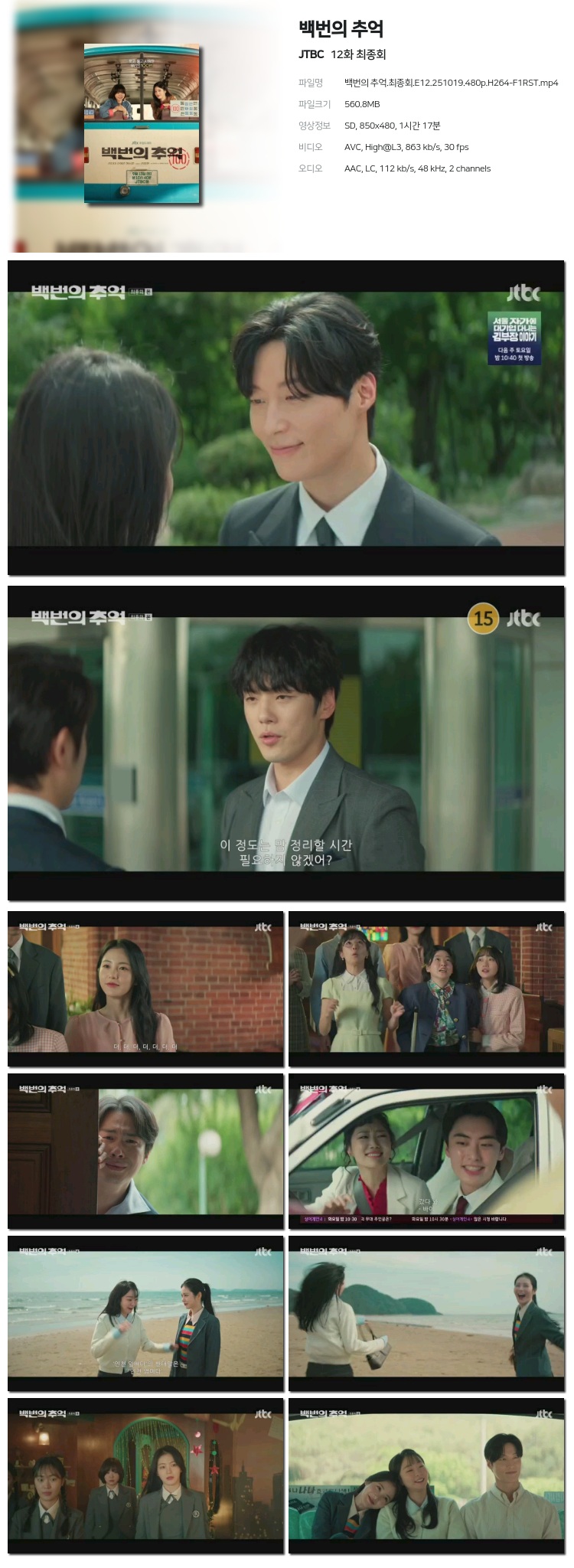 | 백번의 추억.최종회.E12.251019.480p.H264-F1RST.mp4 | 560.8 M | - | 850x480 |