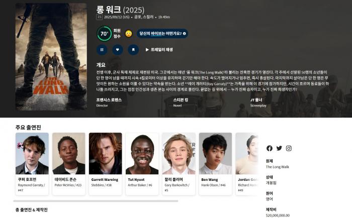 10월 한국미개봉 스티븐킹원작 죽을 때까지 걷다 [ 롱 워 크 ] 1080P 5.1 한글자막 다시보기 토렌트