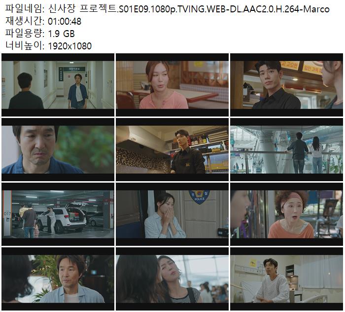 | 신사장 프로젝트.S01E09.1080p.TVING.WEB-DL.AAC2.0.H.264-Marco.mkv | 1.9 G | - | 1920x1080 |
