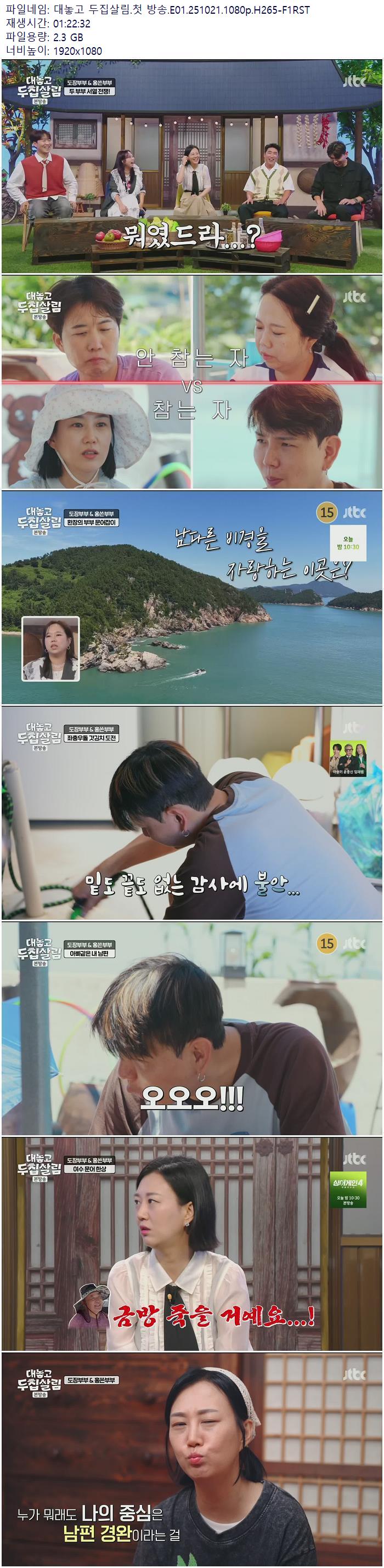 | 대놓고 두집살림.첫 방송.E01.251021.1080p.H265-F1RST.mp4 | 2.3 G | - | 1920x1080 |