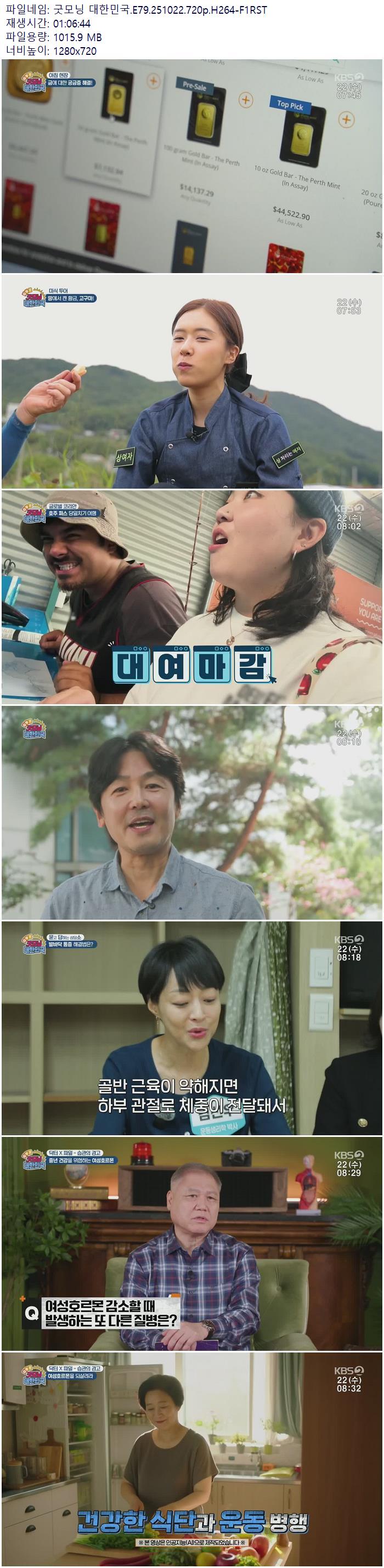 | 굿모닝 대한민국.E79.251022.720p.H264-F1RST.mp4 | 1015.9 M | - | 1280x720 |